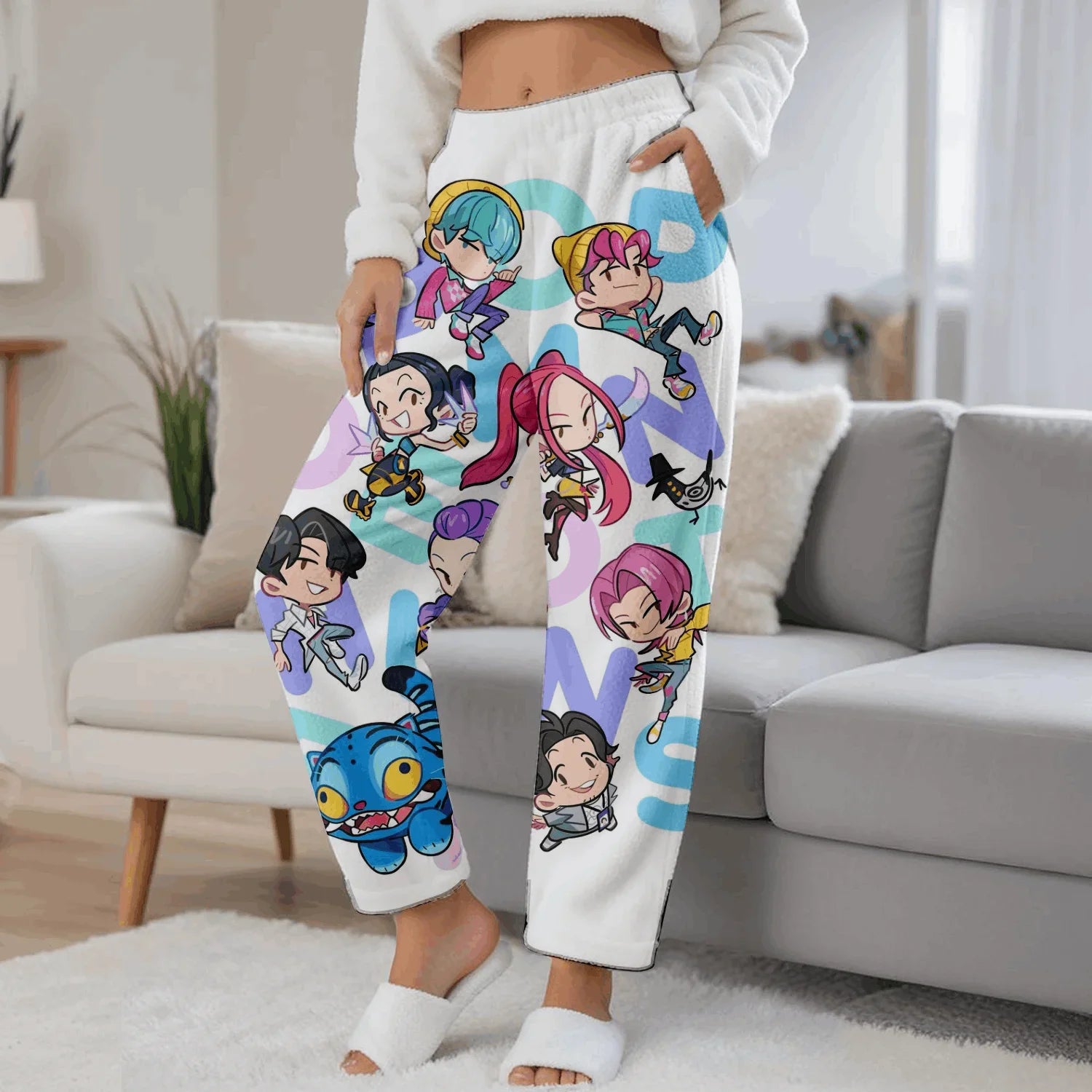 Step into the world of K-Pop Demon Hunters with these stylish and cozy pajama pants – a must-have for fans who want both fashion and comfort in their everyday wear. Designed with a trendy cartoon print, these pants capture the bold and playful spirit of K-Pop culture, making them the perfect statement piece for your wardrobe.